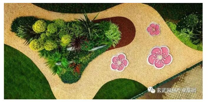 根據(jù)公司設(shè)計部門精心構(gòu)思的方案,對綠地空間中心區(qū)域設(shè)置兩組花境主景,以造型亮晶女貞多頭棒棒糖、川滇白蠟樹棒棒糖營造整個花境亮點,以及水果蘭球、紫葉馬蘭球、亮晶女貞球、北美冬青、朱蕉、新西蘭亞麻、白羽芒、大麻葉澤蘭、金葉石菖蒲、黃金菊等精品綠植及時令花卉設(shè)計花境景觀,并鋪撒火山巖點綴,增添回歸自然的野趣。